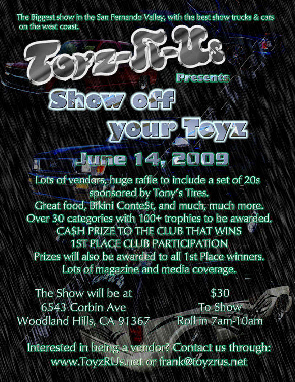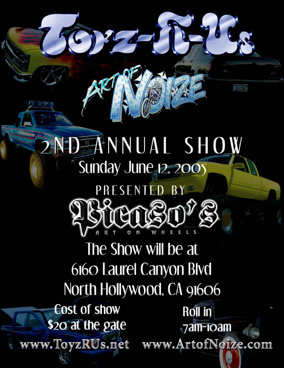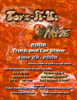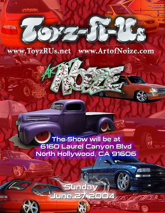 Show flyers for shows done by Art of Noize and Toyz R Us (now known as Toyz)